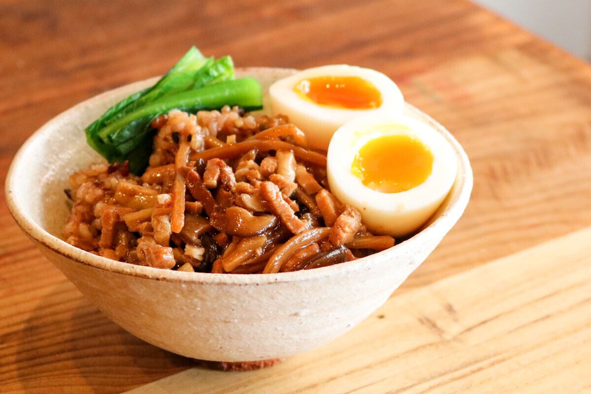 ●味の特長人気台湾料理のルーロー飯を本格的にアレンジ。中国の代表的なミックススパイスの五香粉を効かせることで、本場の味に近づけています。餡はごはんが絡みやすいとろみ加減に仕上げ、具材はしっかり豊富に満足感のある量となっています。相性がいい卵をのせて食べるのもおすすめ。甘辛な味付けに濃厚な卵の旨味が良く合います。